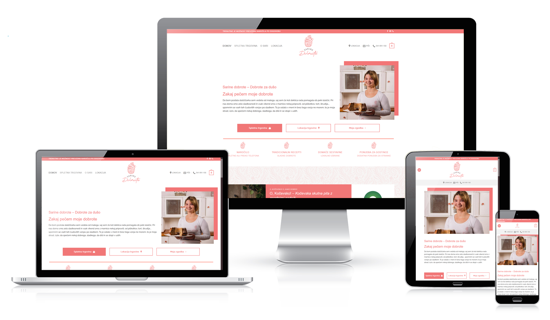 Spletna trgovina za butično slaščičarno. Odzivna spletna trgovina deluje na vseh napravah.